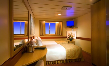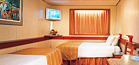 Interior staterooms are excellent vacation values. These spacious accommodations include most of the same generous amenities as their ocean-view neighbors. Some even feature an extra pull-down bed, which makes these staterooms ideal for families. All staterooms have carpeting, ample drawer and closet space, private facilities (shower, basin and toilet), telephone and color television showing first-run films. Our SuperLiners all feature staterooms above ocean level for a more comfortable cruise.